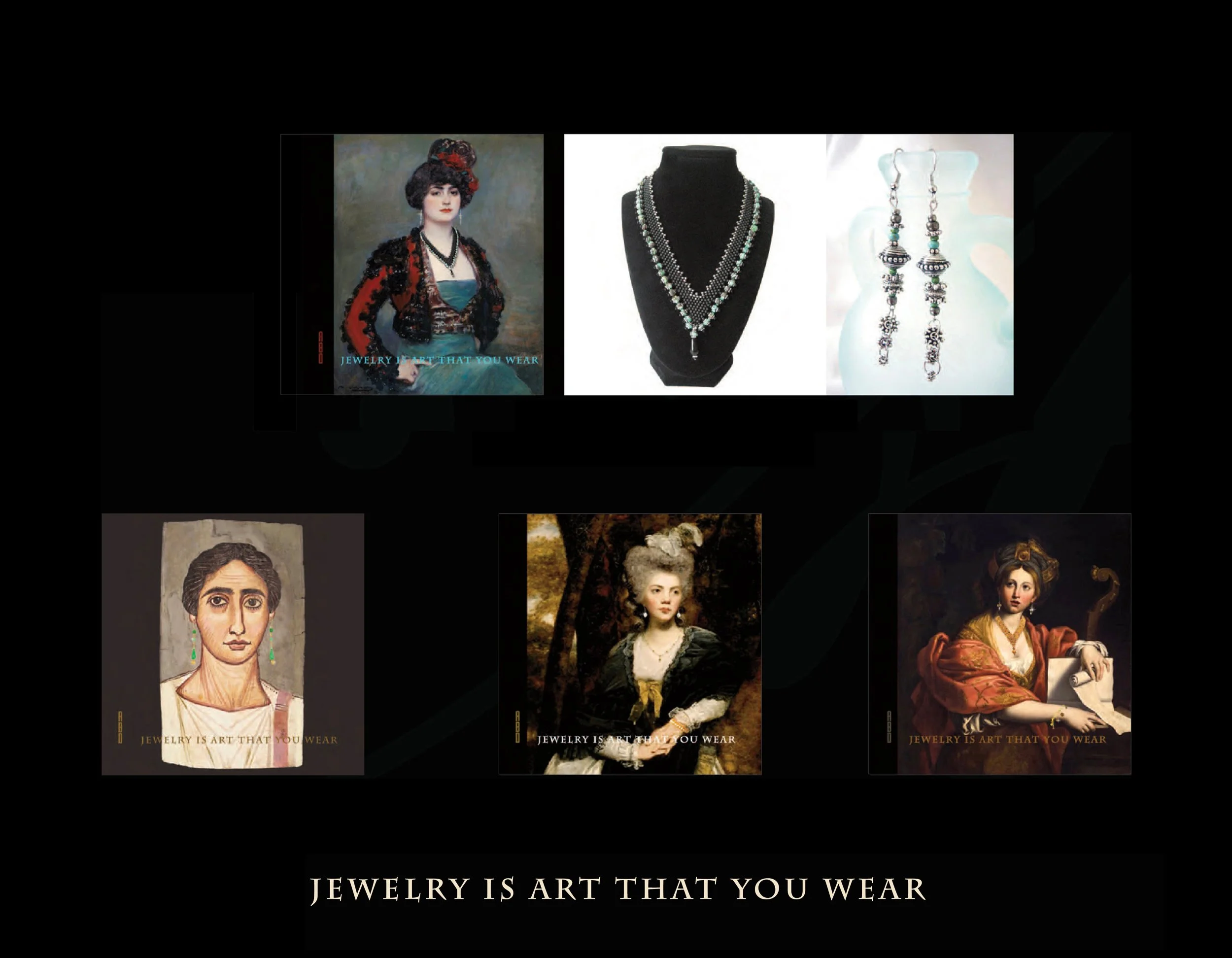 Instagram Posts for ABD Jewelry. Concept creation~ using paintings of women to use as jewelry models, and reinforcing the company’s motto that “Jewelry is Art That You Wear”. Creative direction, design and photo-illustration.